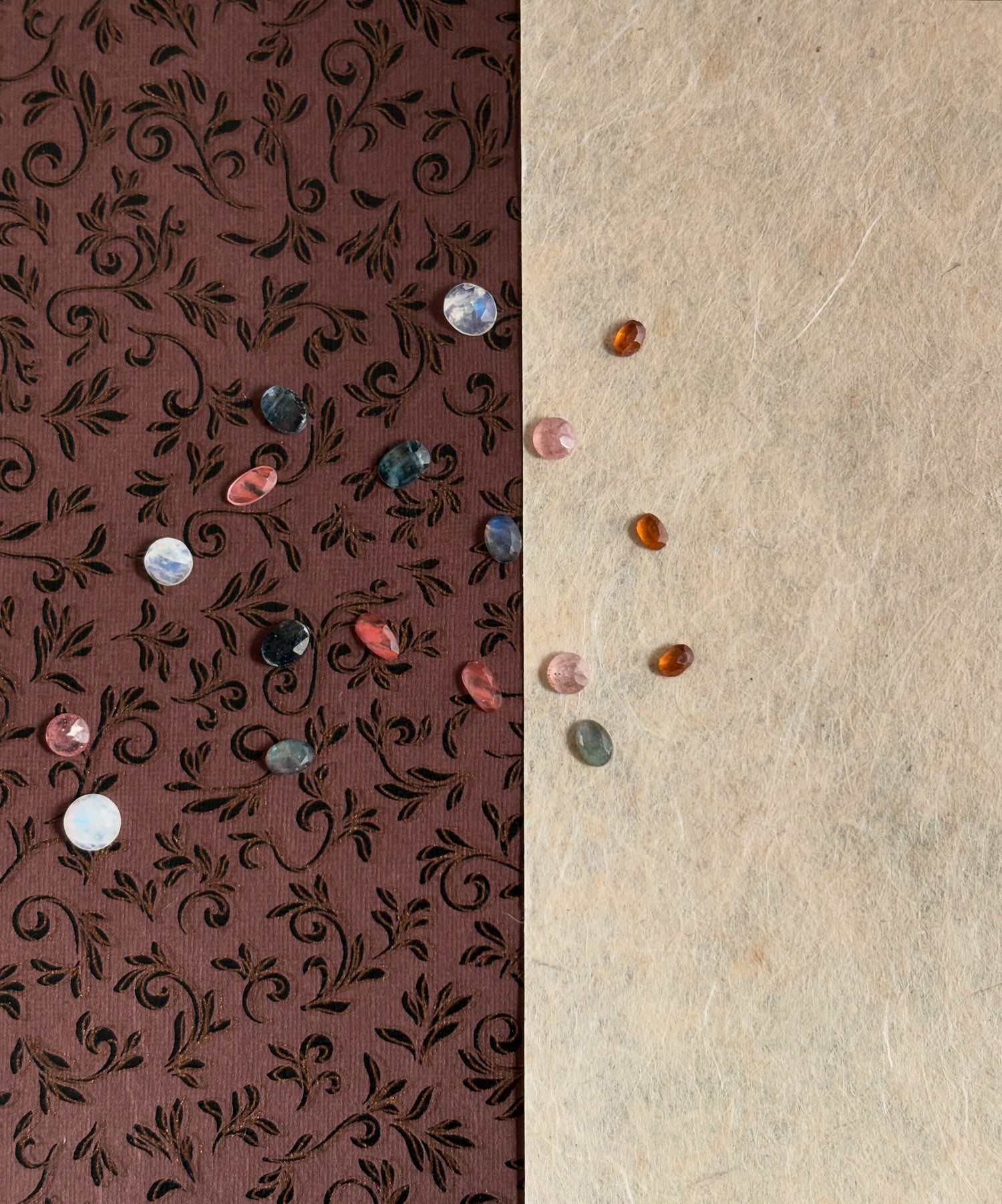 Each creation draws from over sixty natural gemstones, chosen for their raw beauty and quiet individuality. No two stones are ever alike.