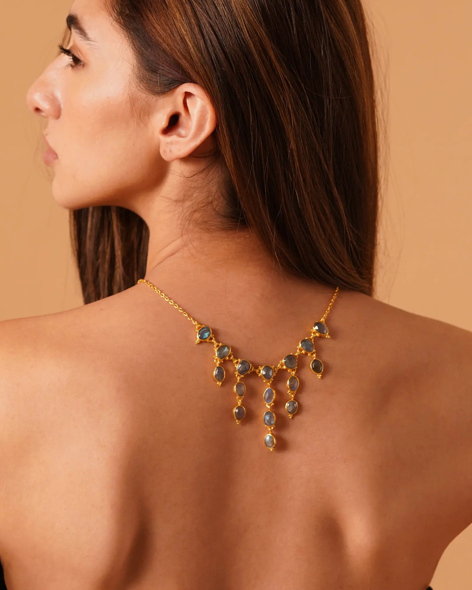 - Material: Brass-based necklace with 18-karat gold plating