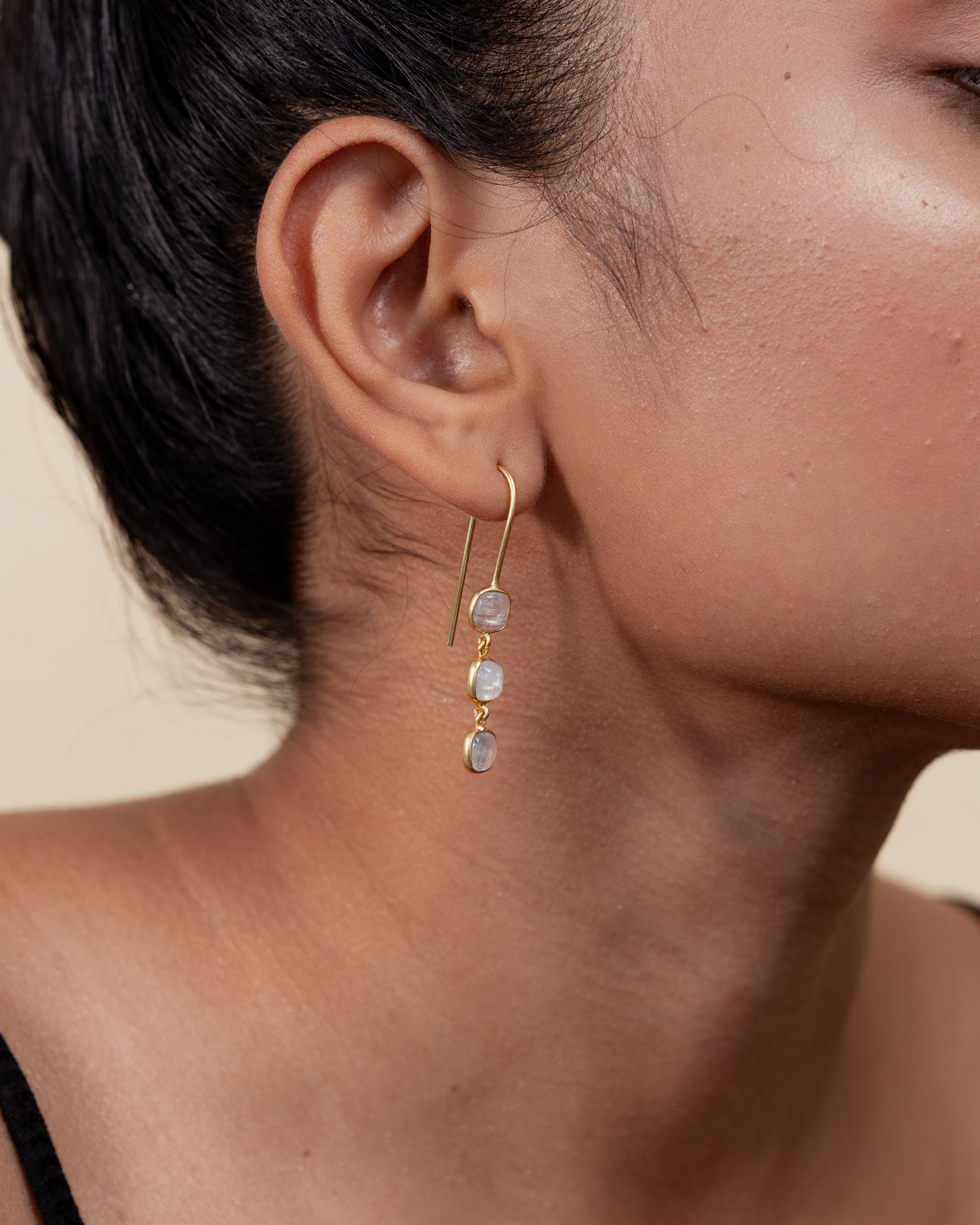- Material: Brass-based earrings with 18-karat gold plating