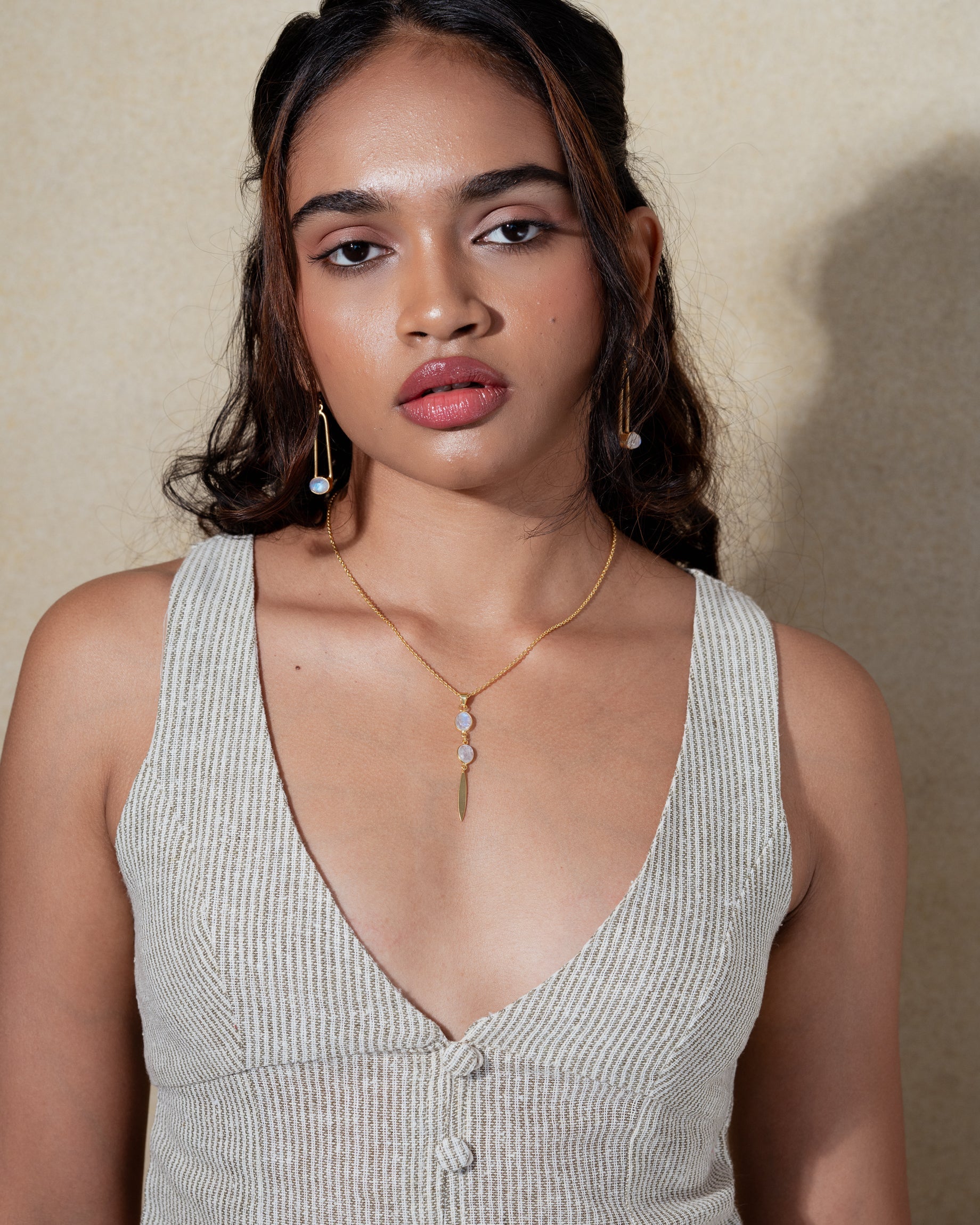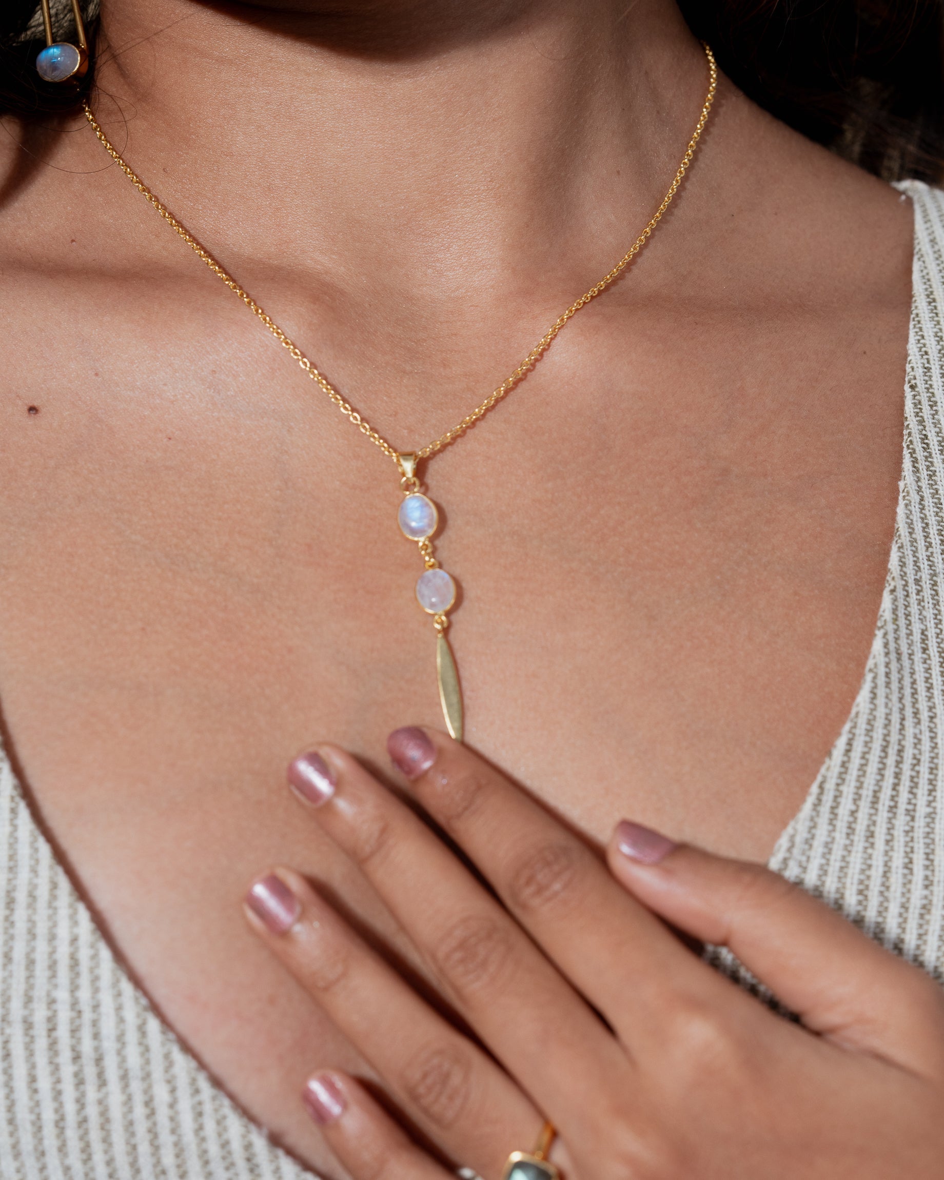 - Gemstone: Rainbow Moonstone / Natural Larimar