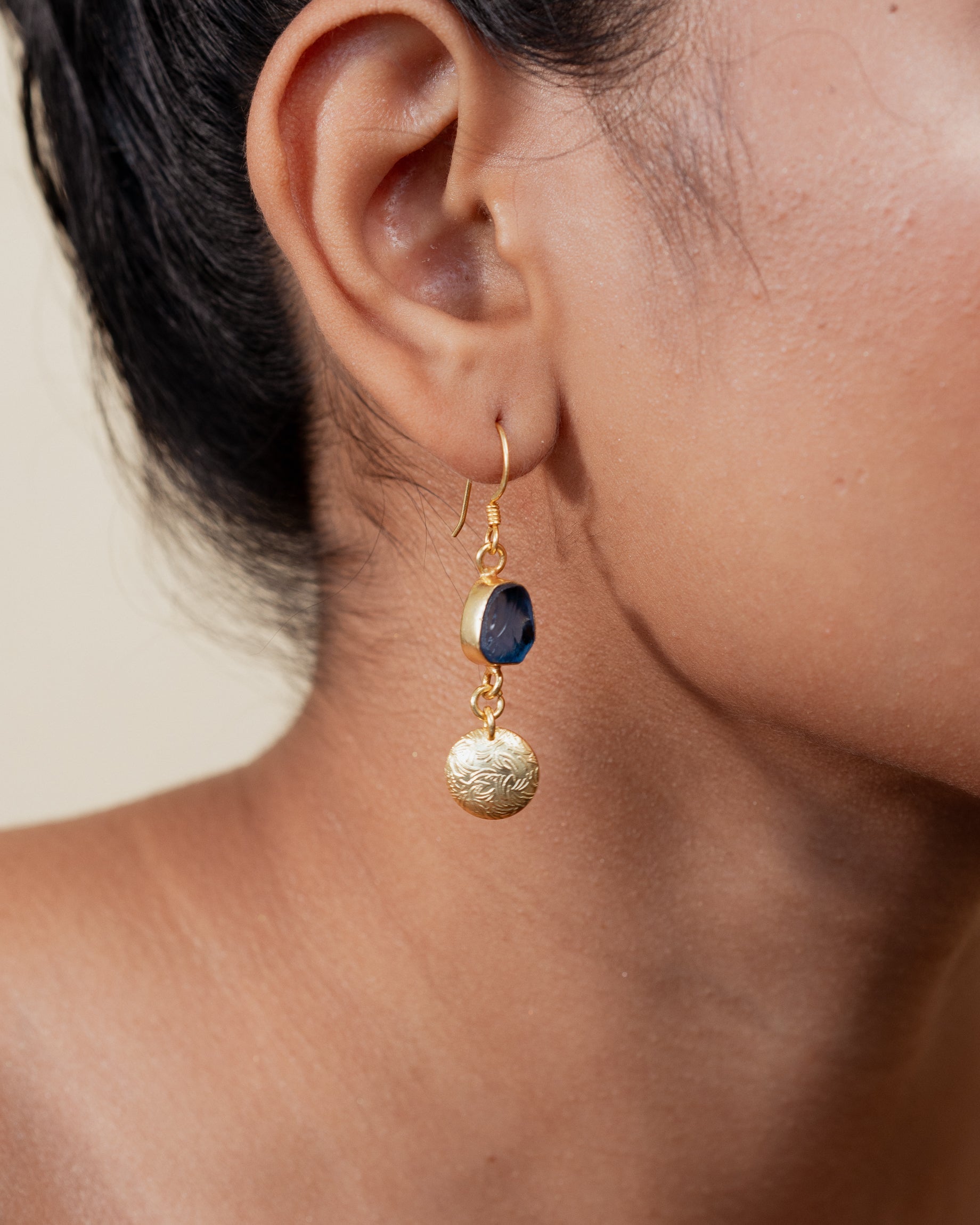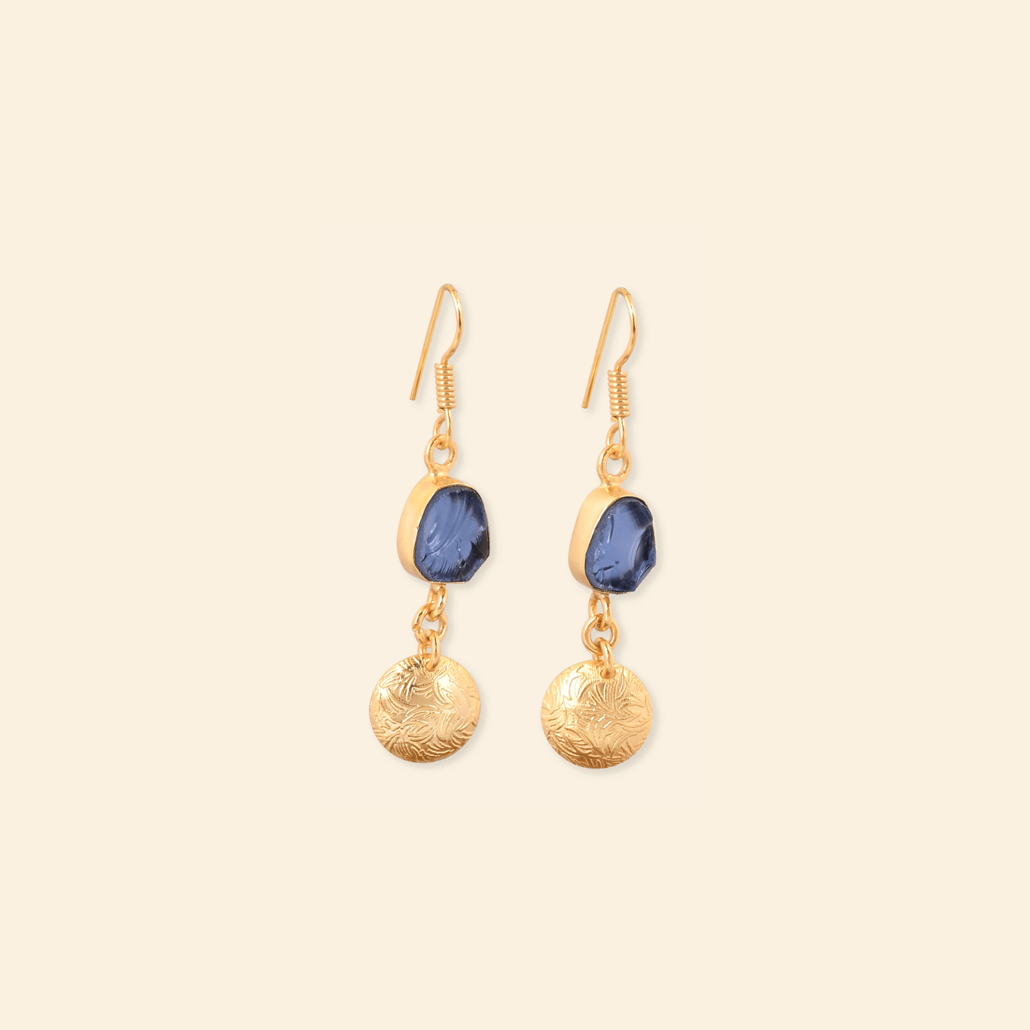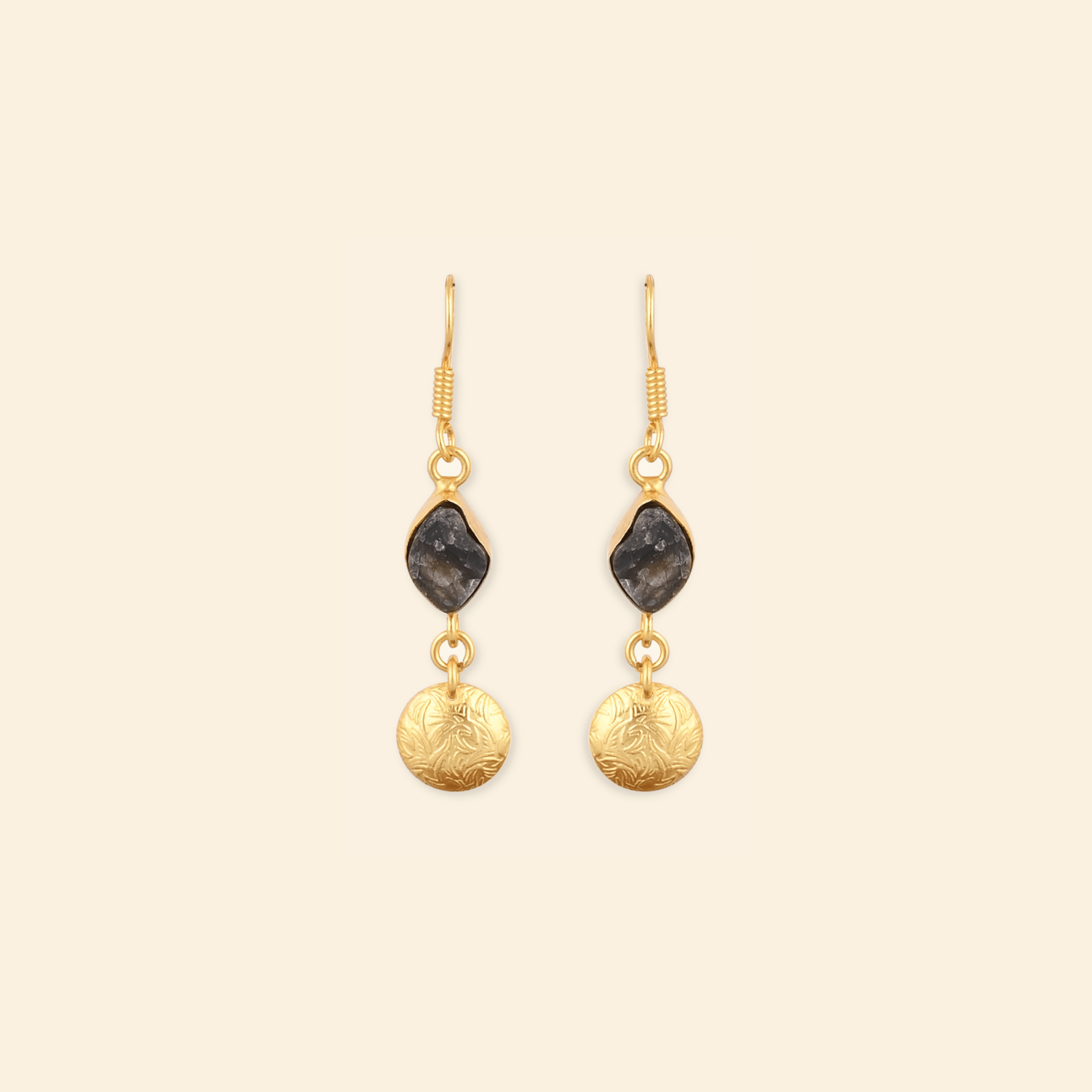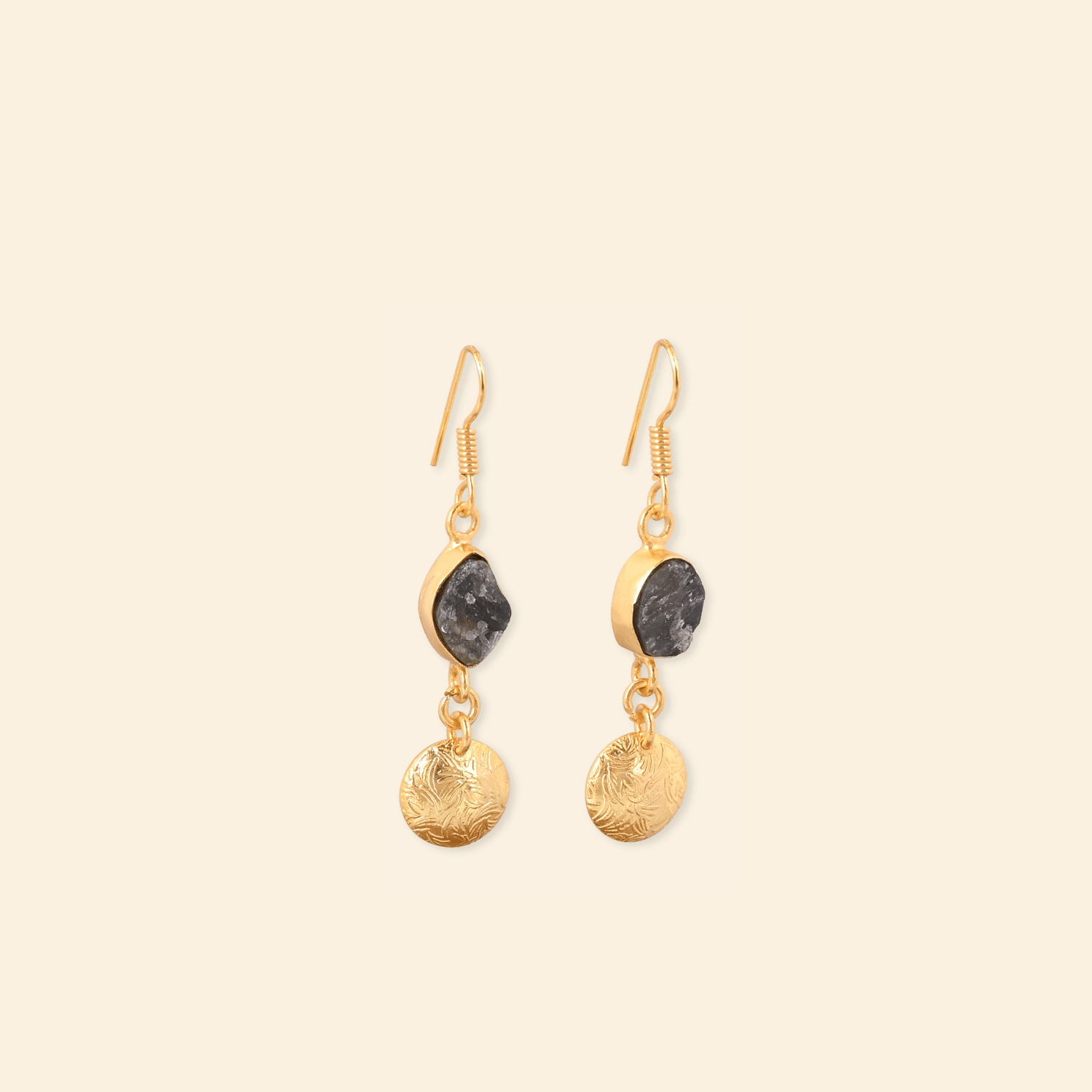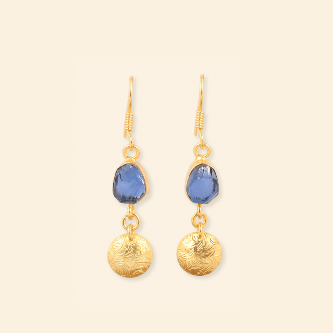 - Material: Brass-based earrings with 18-karat gold plating
