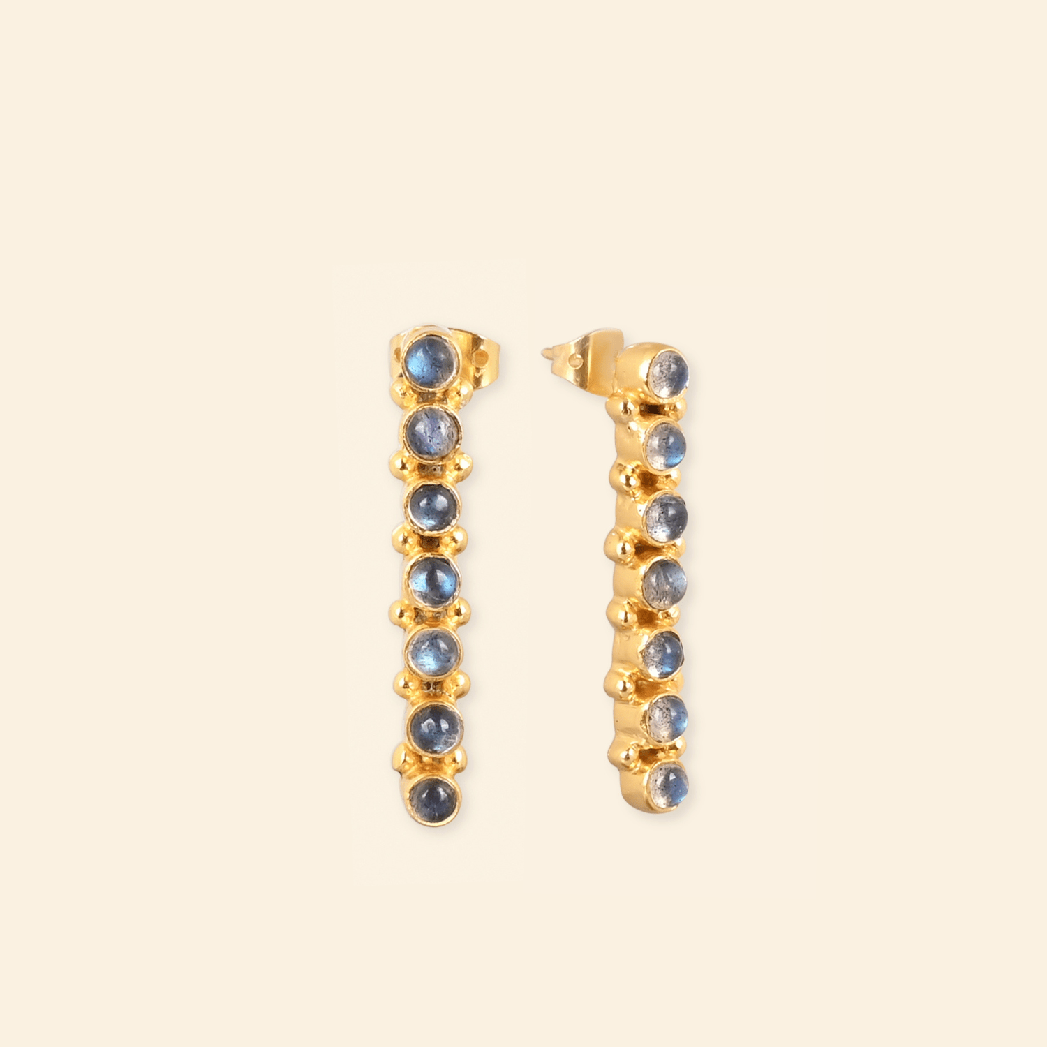 - Material: Brass-based earrings with 18-karat gold plating
