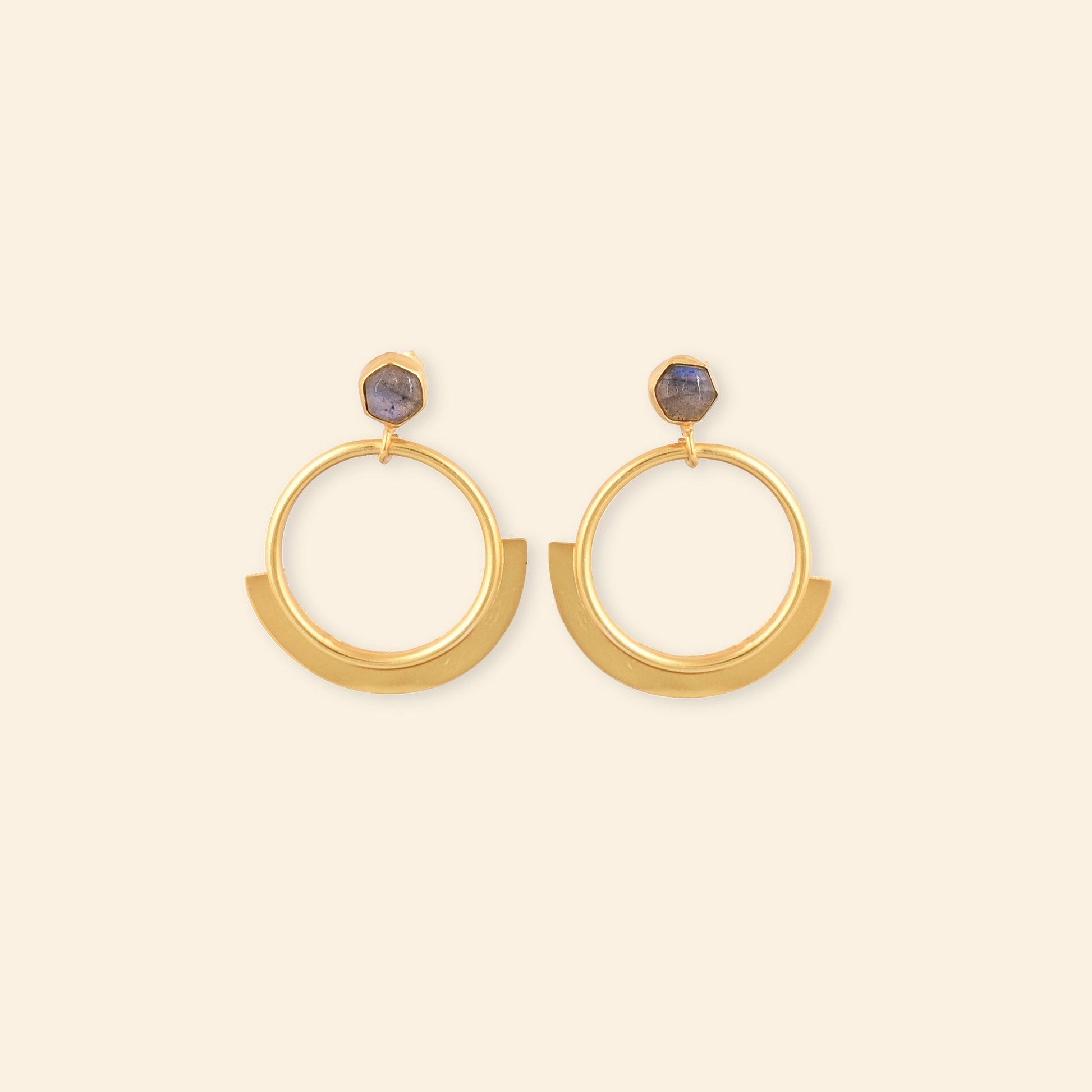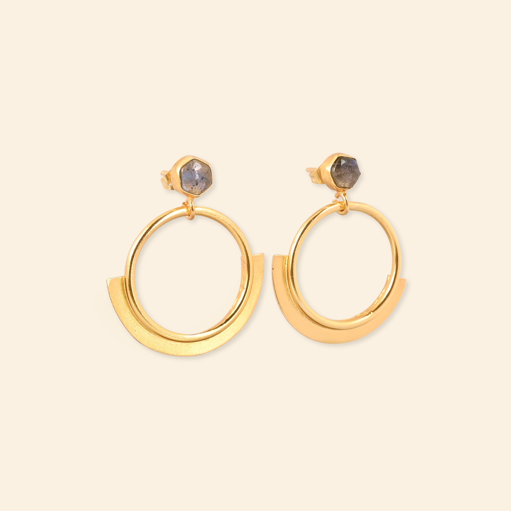 - Material: Brass-based earrings with 18-karat gold plating