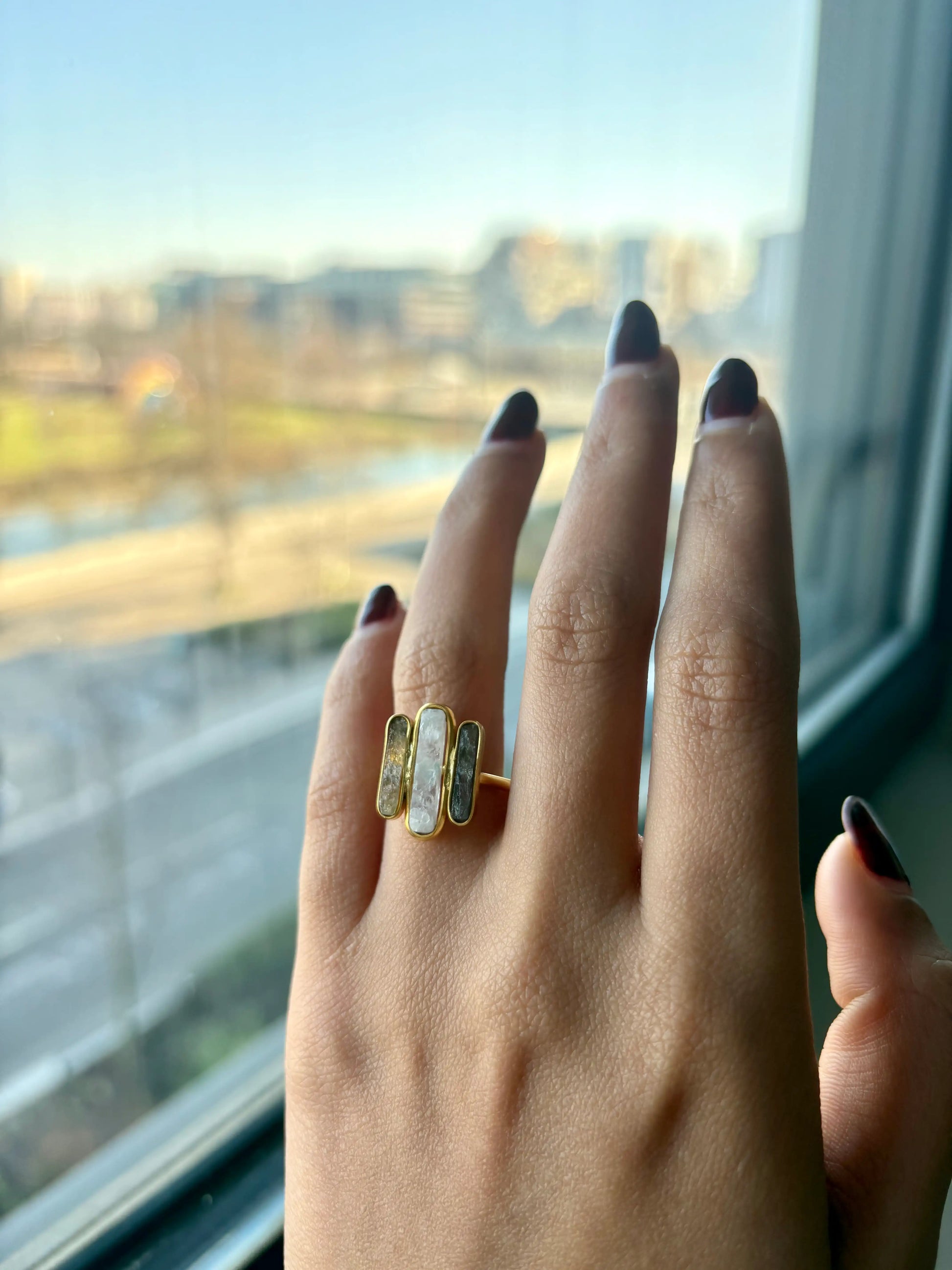 - Material: Brass-based ring with 18-karat gold plating