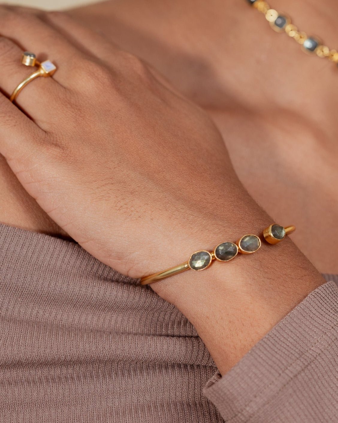 - Gemstone: Aqua Crackle / Yellow Fire Labradorite