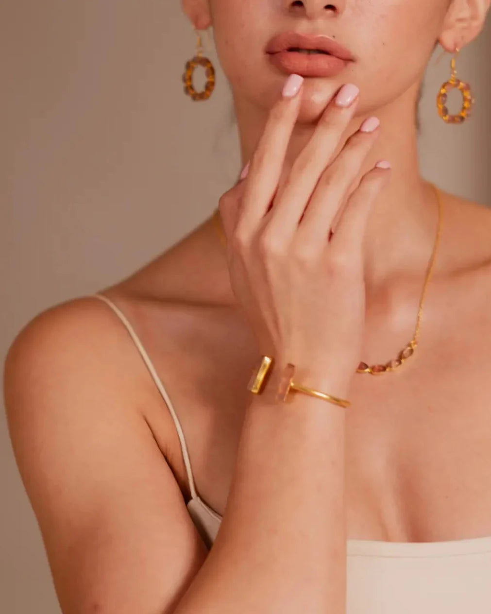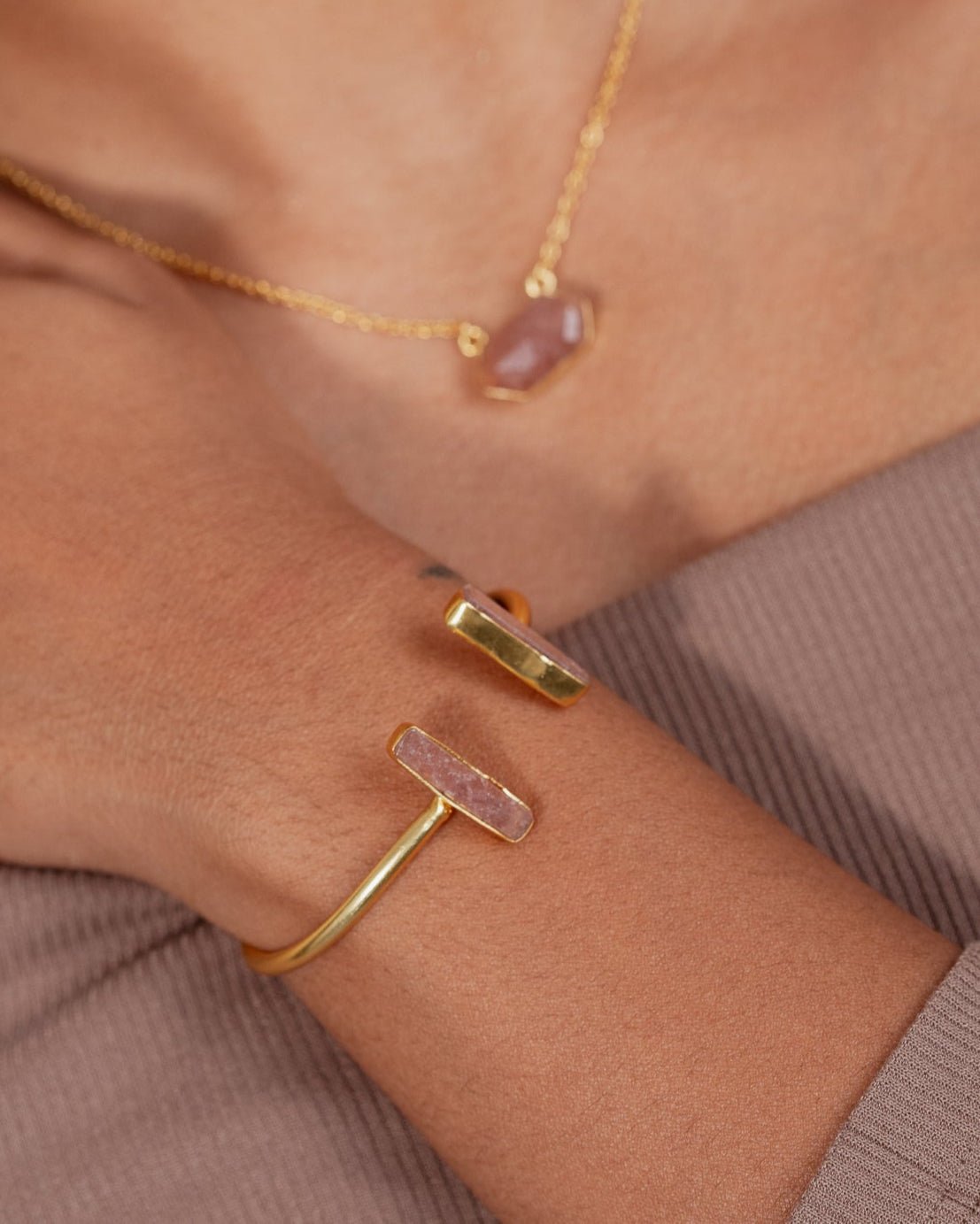- Gemstone: Blue Chalcedony / Strawberry Quartz
