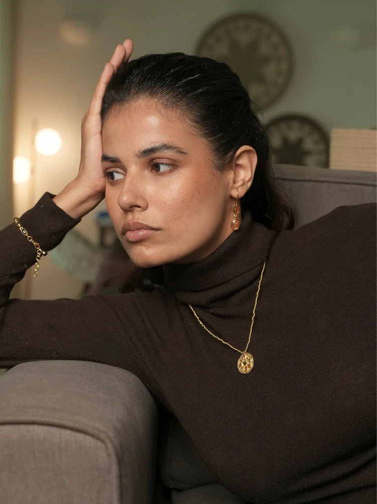 - Material: Brass-based earrings with 18-karat gold plating
