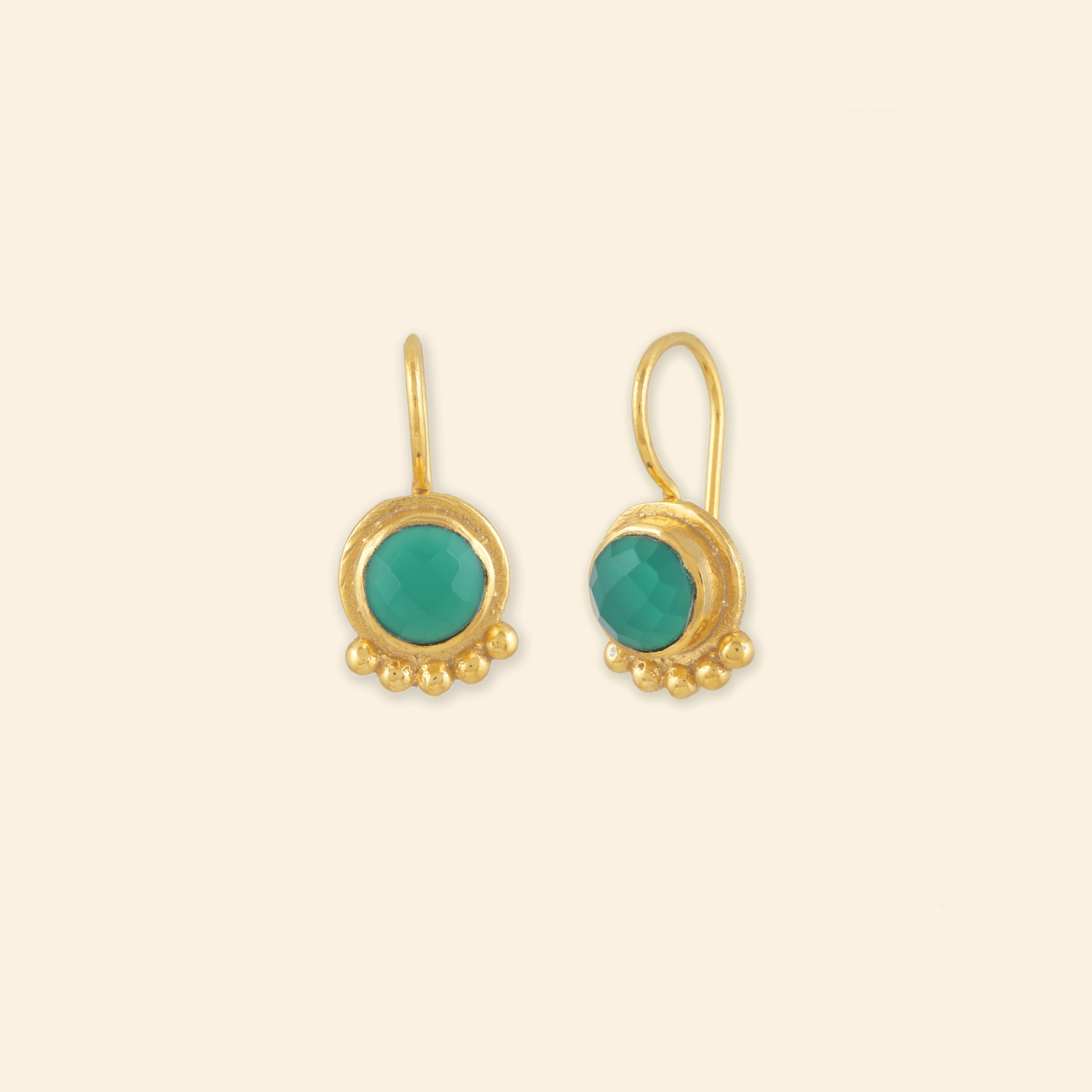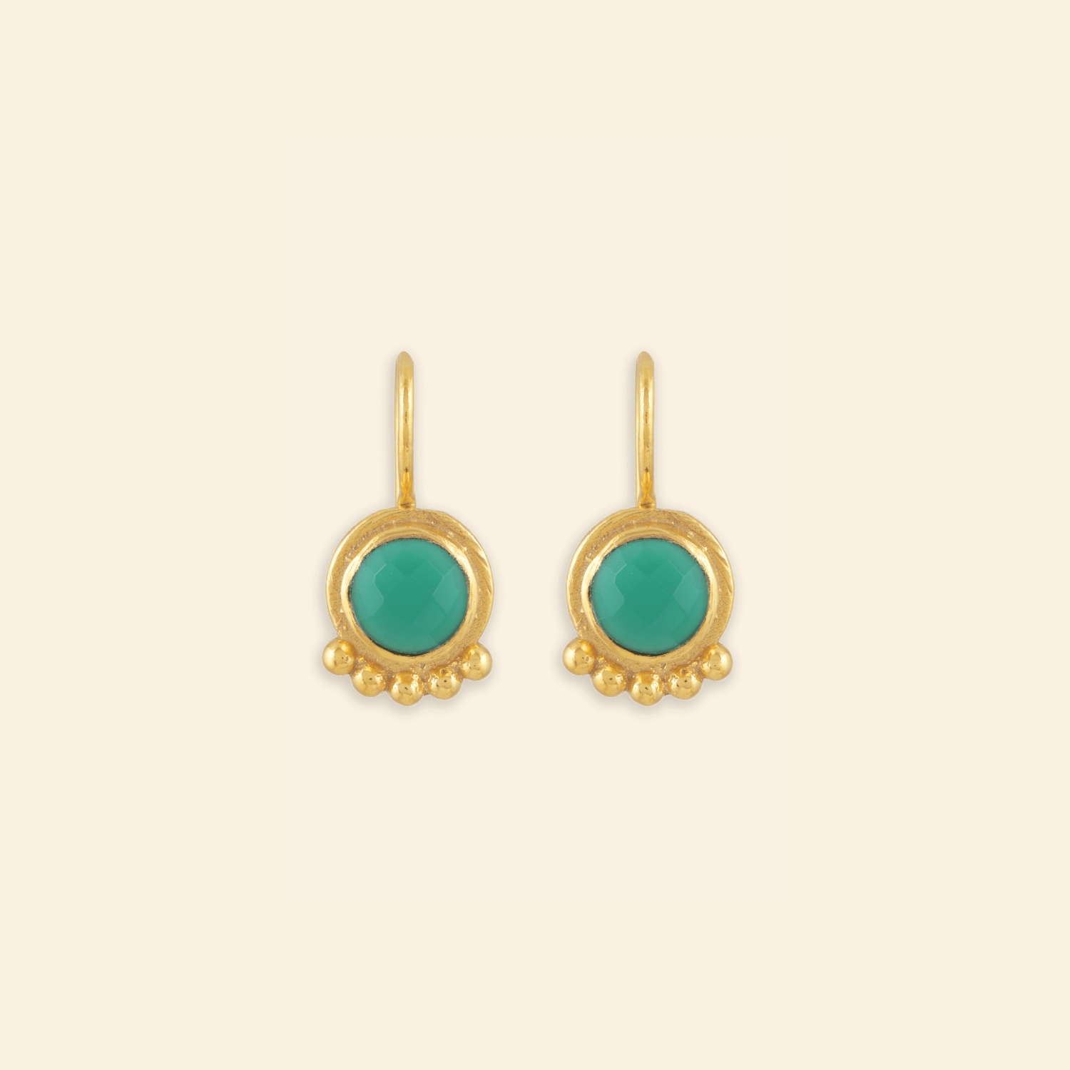 - Material: Brass-based earrings with 18-karat gold plating