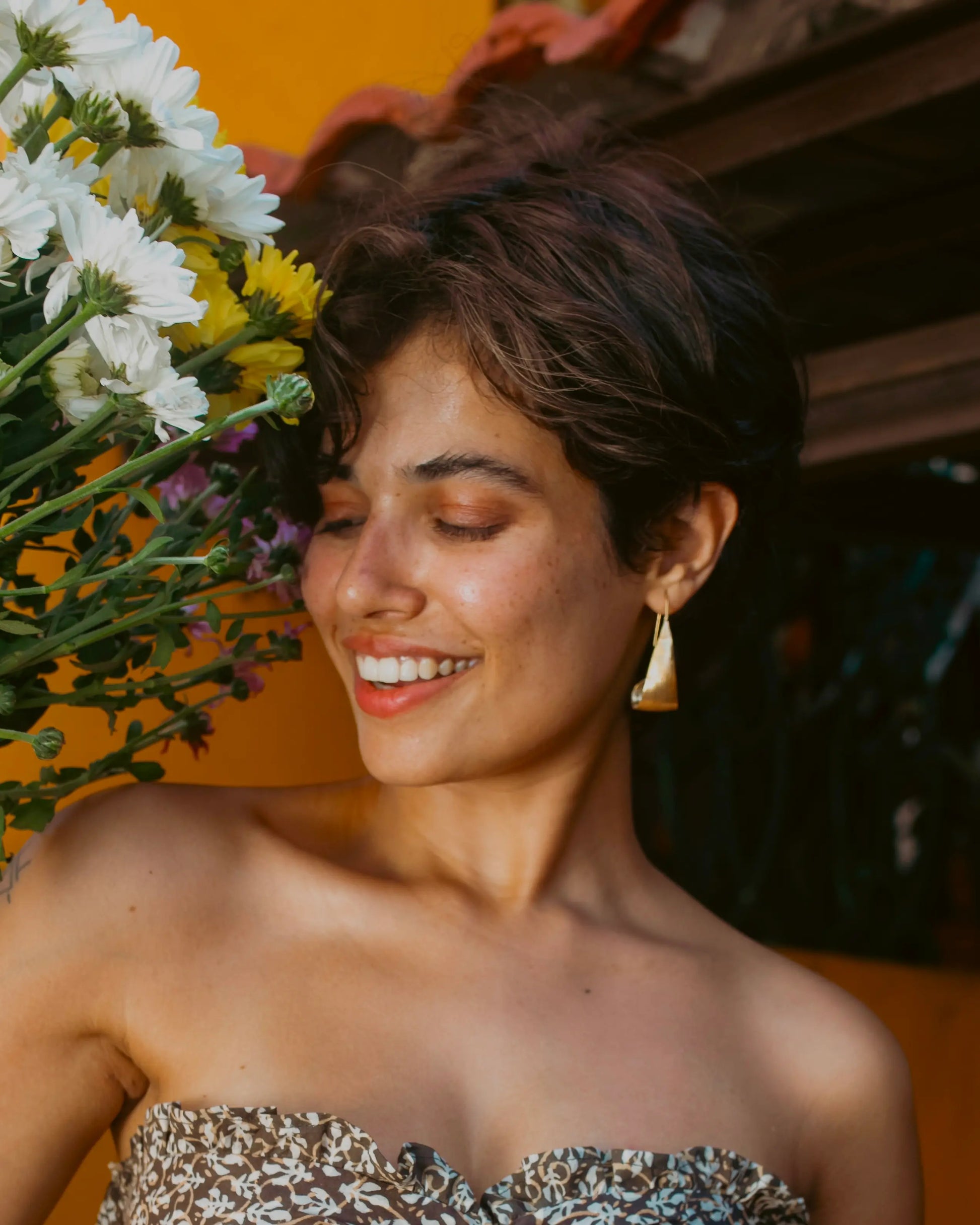 - Material: Brass-based earrings with 18-karat gold plating