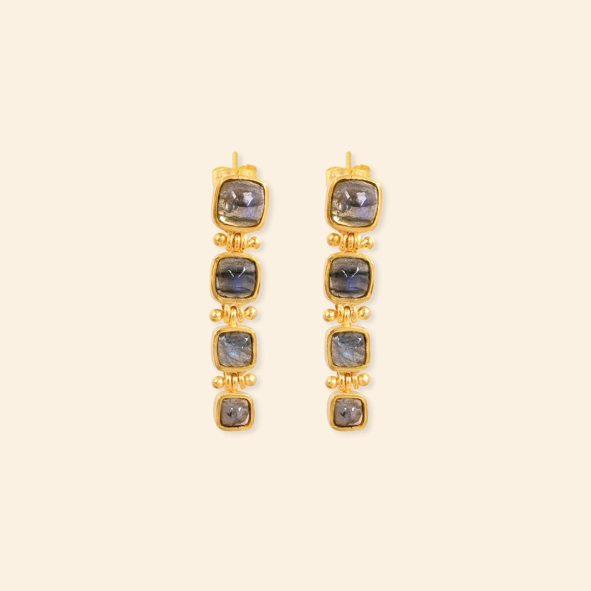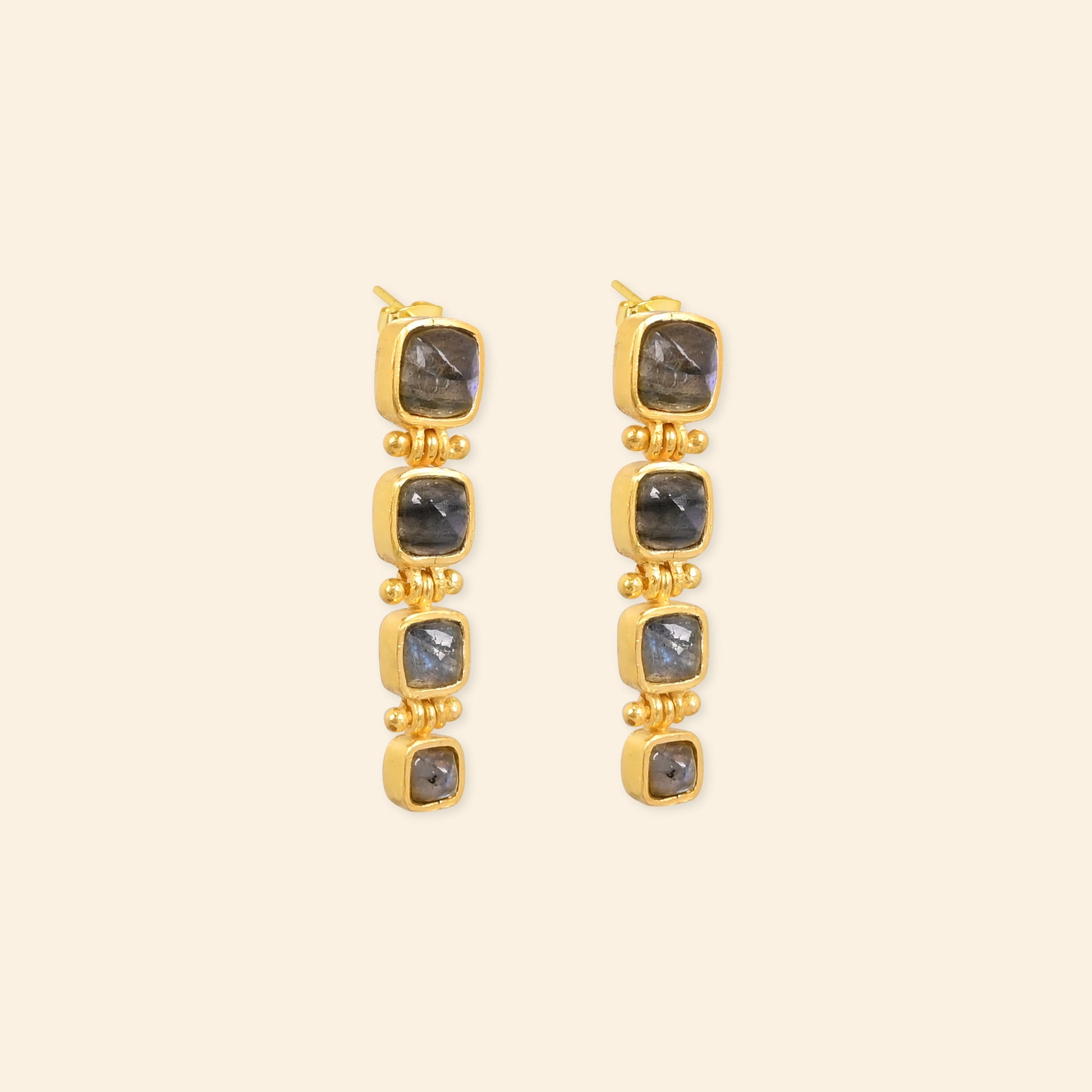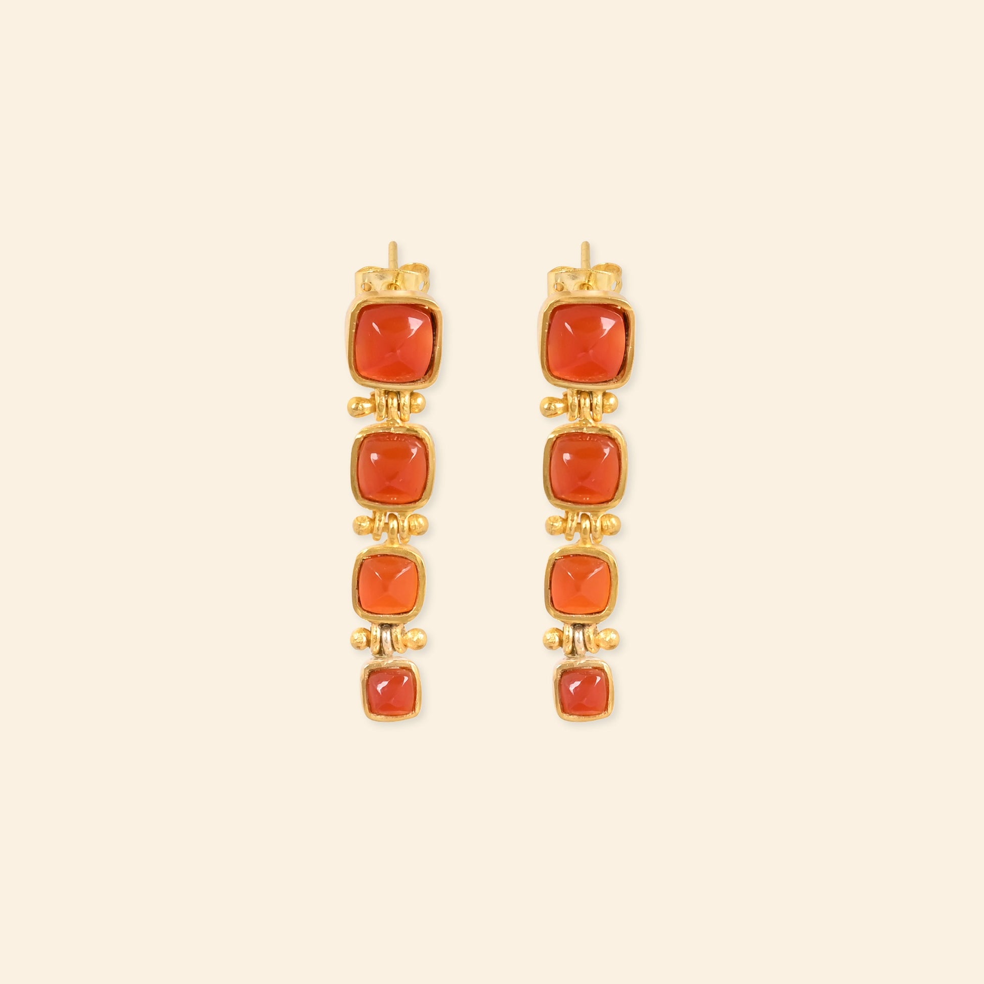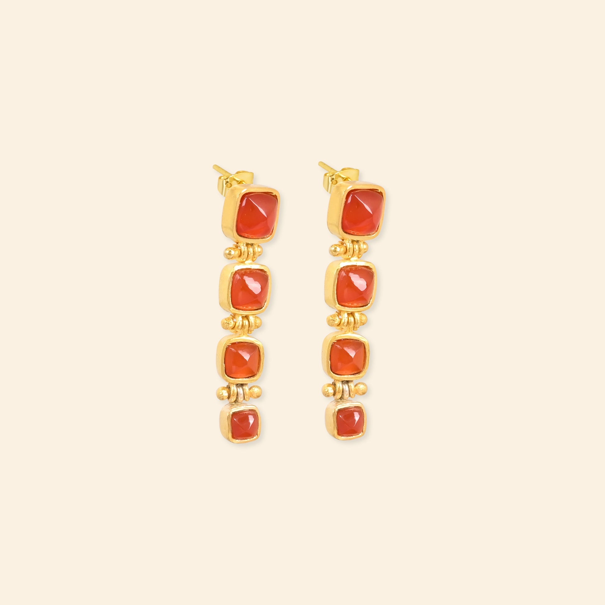 - Material: Brass-based earrings with 18-karat gold plating