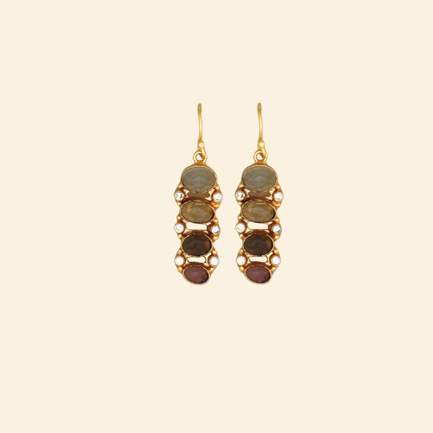 - Material: Brass-based earrings with 18-karat gold plating